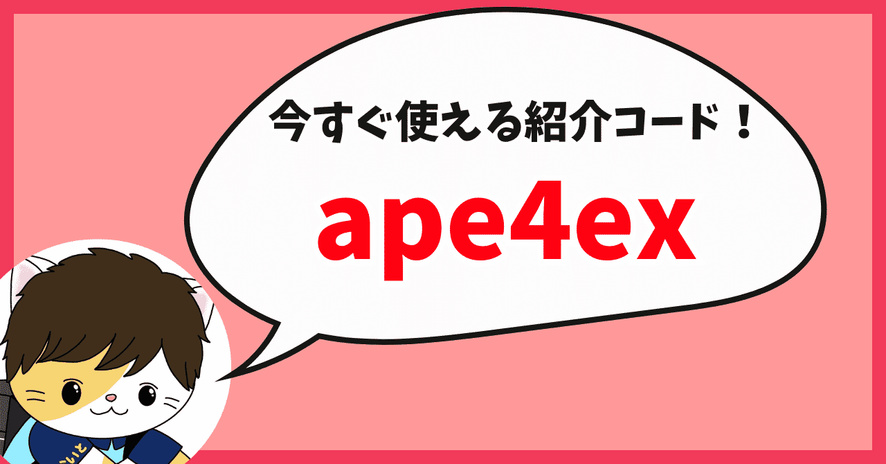 現在は招待コード【ape4ex】を入力して登録するだけで、200円分の残高がプレゼントされるお得なキャンペーン中です!この記事では、招待コードの使い方や注意点、利用者の口コミまでわかりやすく解説します。