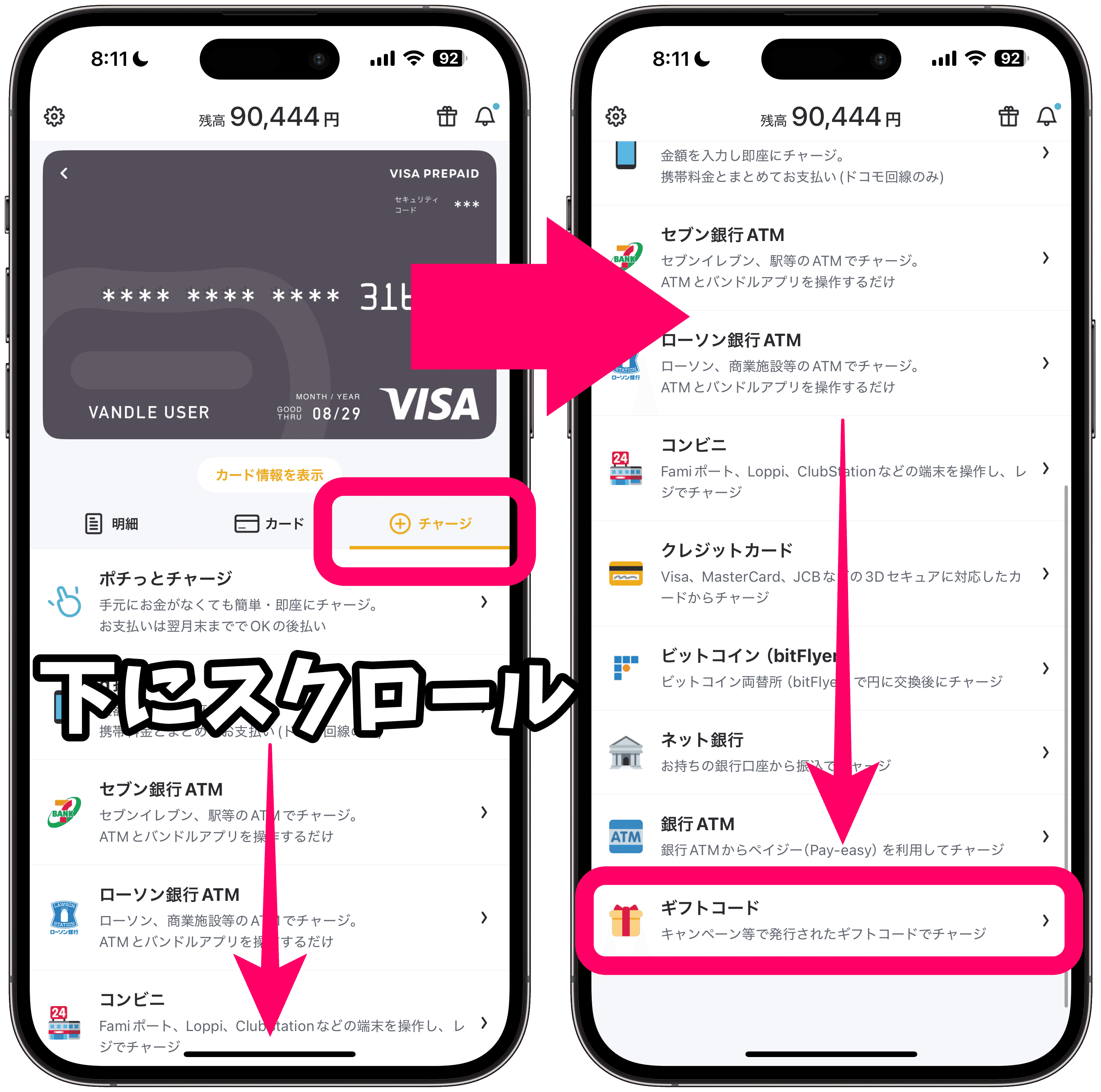 一方のギフトコードは、バンドルカード運営が配布するクーポンコードで、チャージ残高として利用できます。