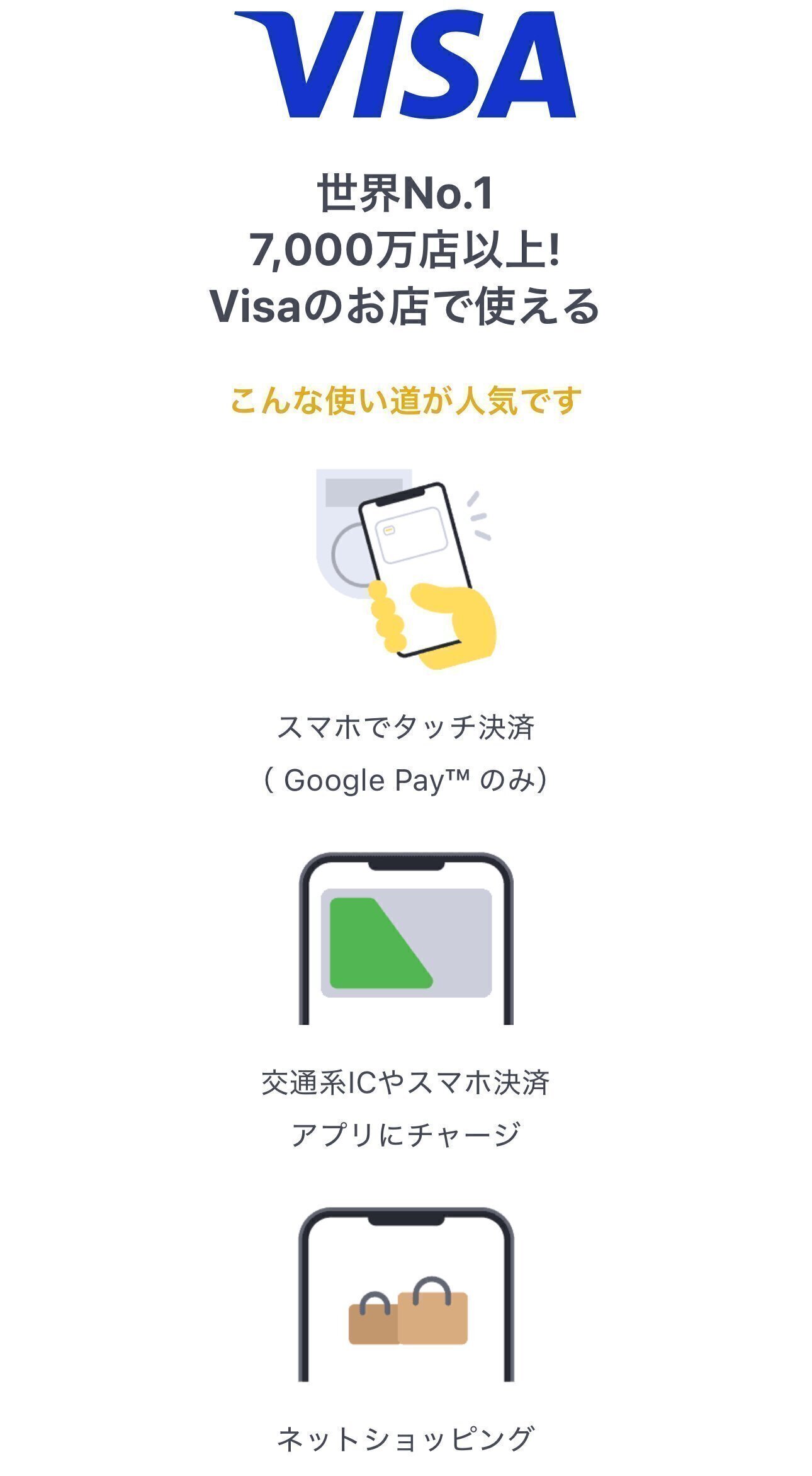 実店舗での利用については、Google PayでVisaのタッチ決済が使えます。