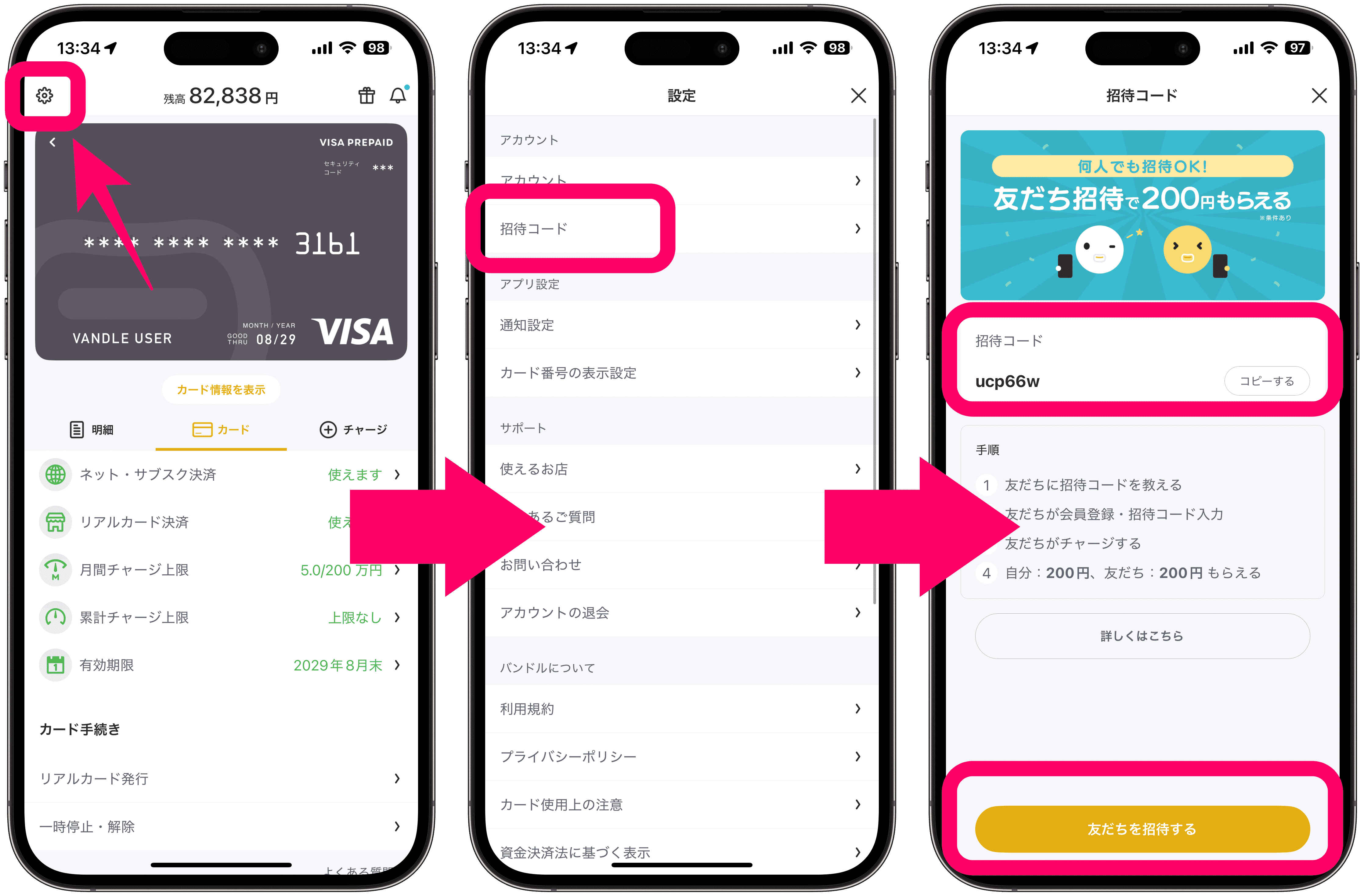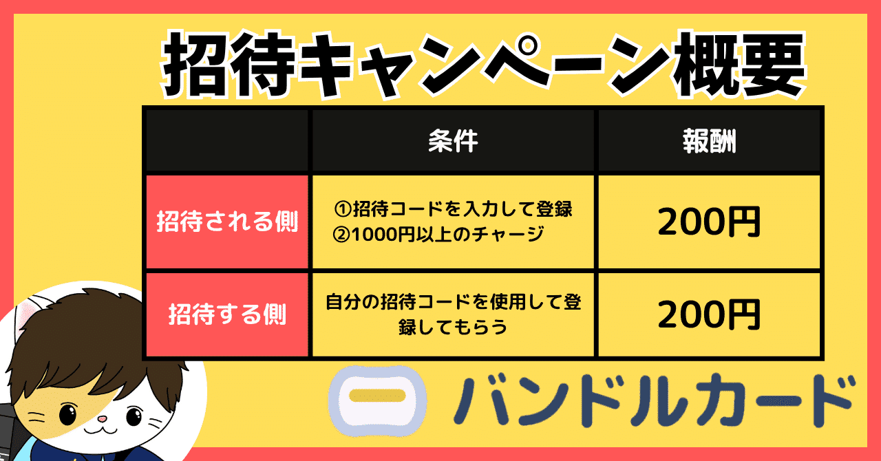 今なら、既存ユーザーの紹介で新規登録した方に200円分のバンドルカード残高がプレゼントされるキャンペーンが実施中です。紹介した側も200円もらえる、まさにWin-Winな仕組み。